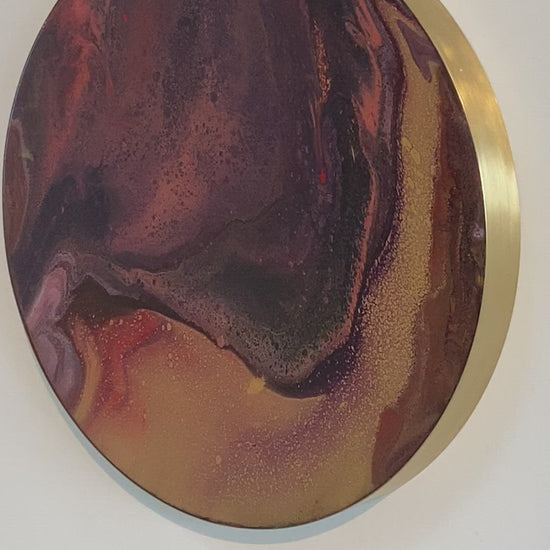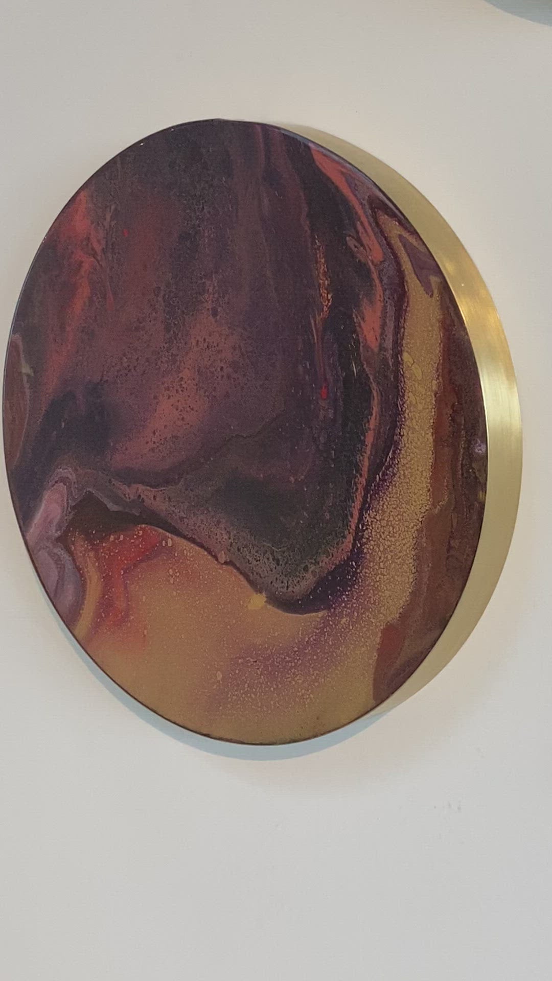 Materialen: MDF houten paneel, hoogwaardige acrylverf, professionele high gloss epoxy en 15 mm messing omlijsting. Inclusief ophangsysteem.