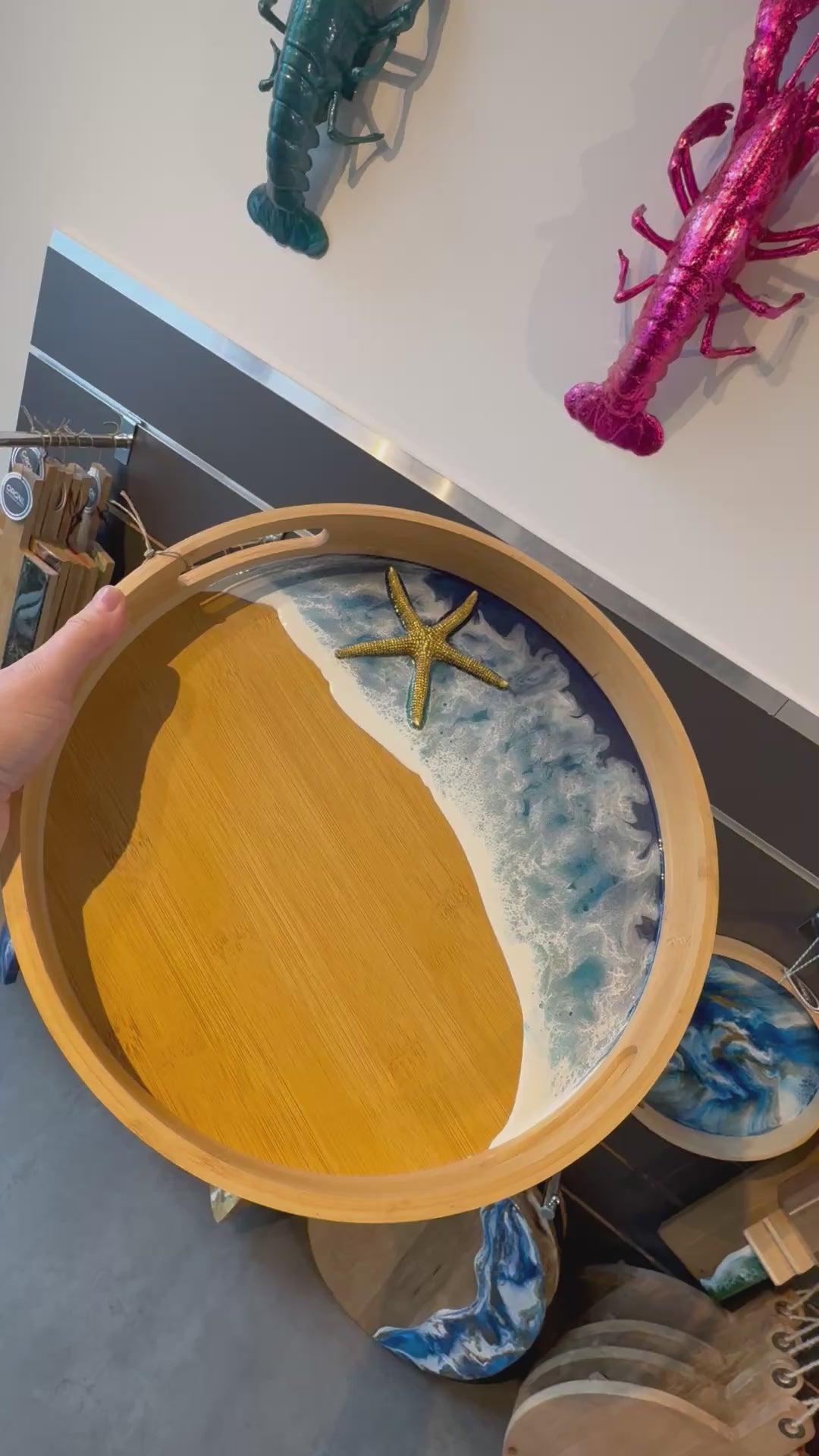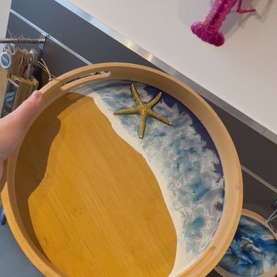 Bamboe dienblad met epoxy Zeester