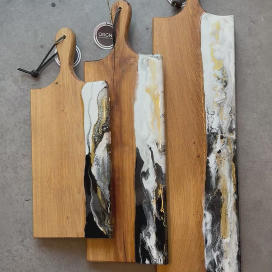 Eikenhouten luxe borrelplank -zwart/wit/goud - 50 cm