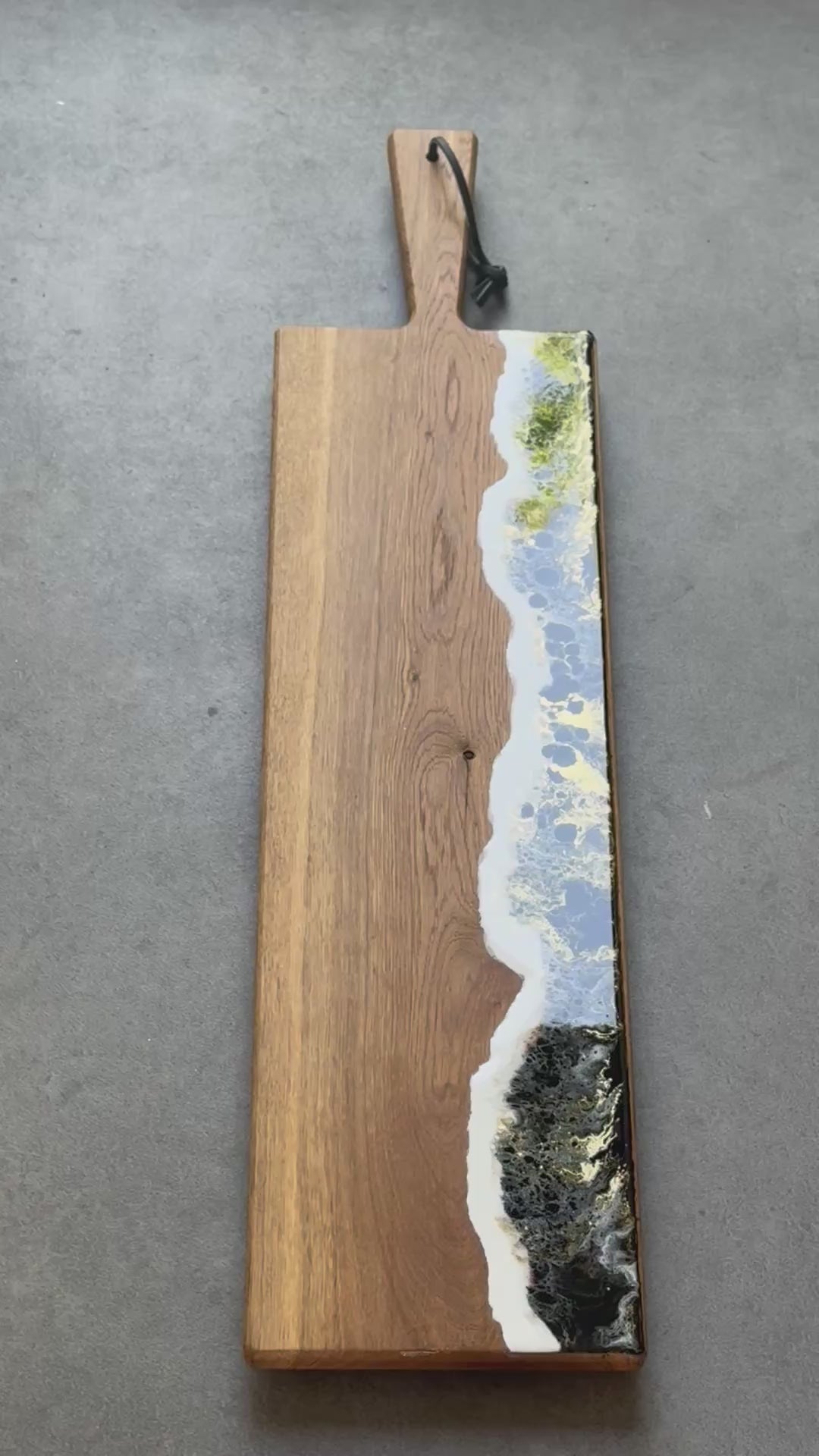 - Wanneer u na verloop van tijd ziet dat het hout wat lichter en droger oogt dan kunt u de plank met voedselveilige olie bijv. druivenpit olie insmeren. Zo blijft de plank jarenlang mooi. De epoxy behoeft geen onderhoud.