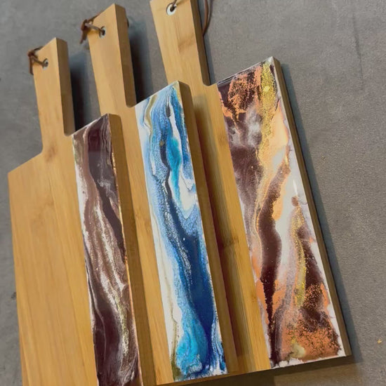 Originele epoxy borrelplank voor het presenteren van hapjes op tafel maar ook om decoratief in de keuken te plaatsen. Alle borrelplanken zijn uniek en ambachtelijk gemaakt en stuk voor stuk echte blikvangers voor op tafel.