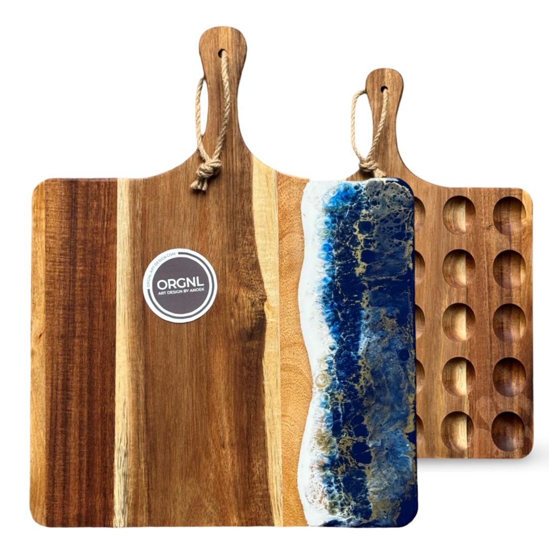 Op zoek naar een unieke borrelplank die zowel praktisch als stijlvol is? Onze handgemaakte serveerplank met epoxy is een echte eyecatcher!