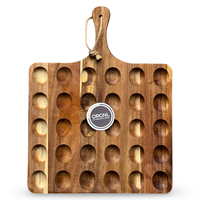 Dankzij het dubbelzijdige design gebruik je de ene kant als borrelplank voor kaas en charcuterie en de andere kant als eierplateau voor heerlijke hapjes zoals gevulde eieren, dadels of tapas die op hun plek moeten blijven liggen.