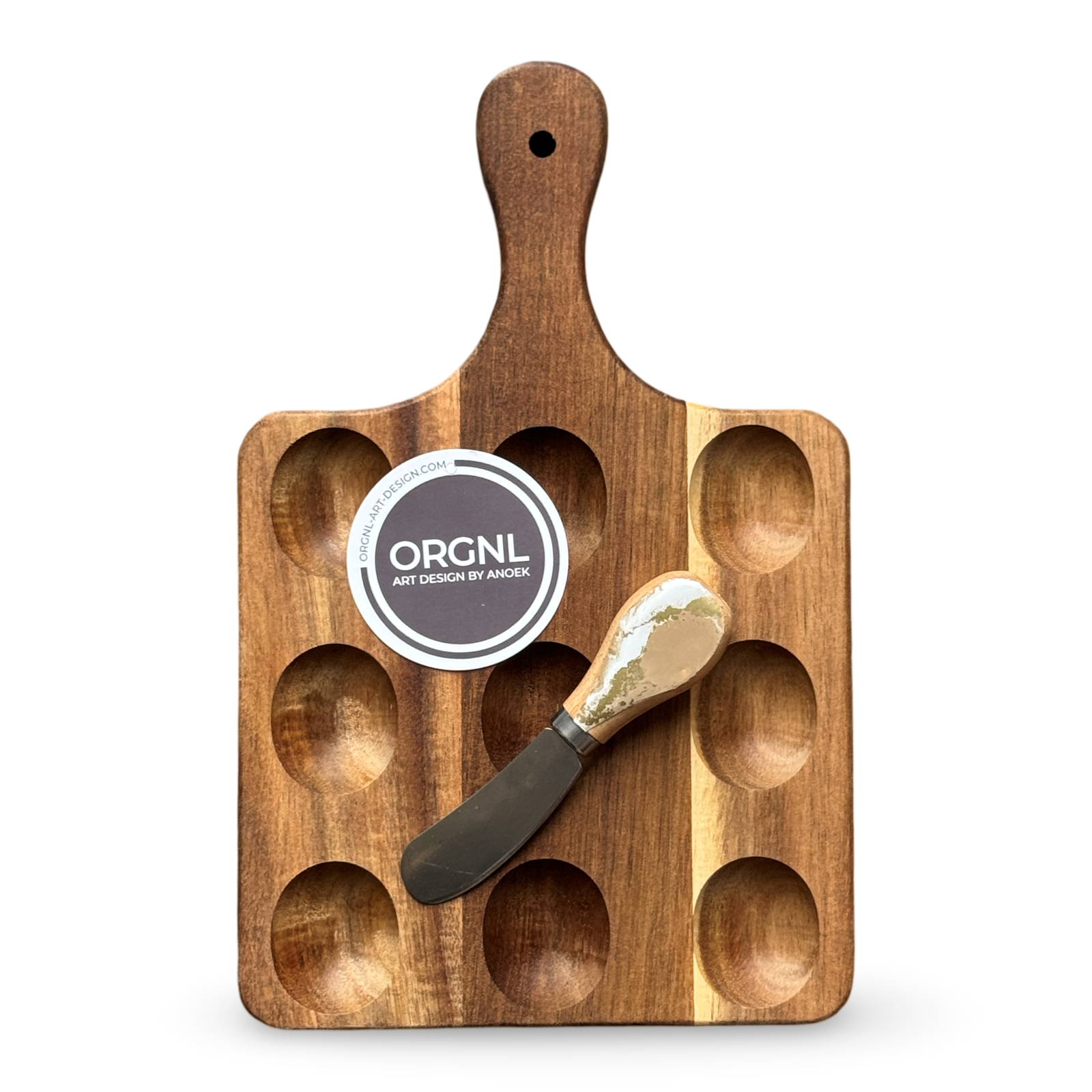 Epoxy borrelplank/eierplank incl. smeermesje-dubbelzijdig-9 gaten