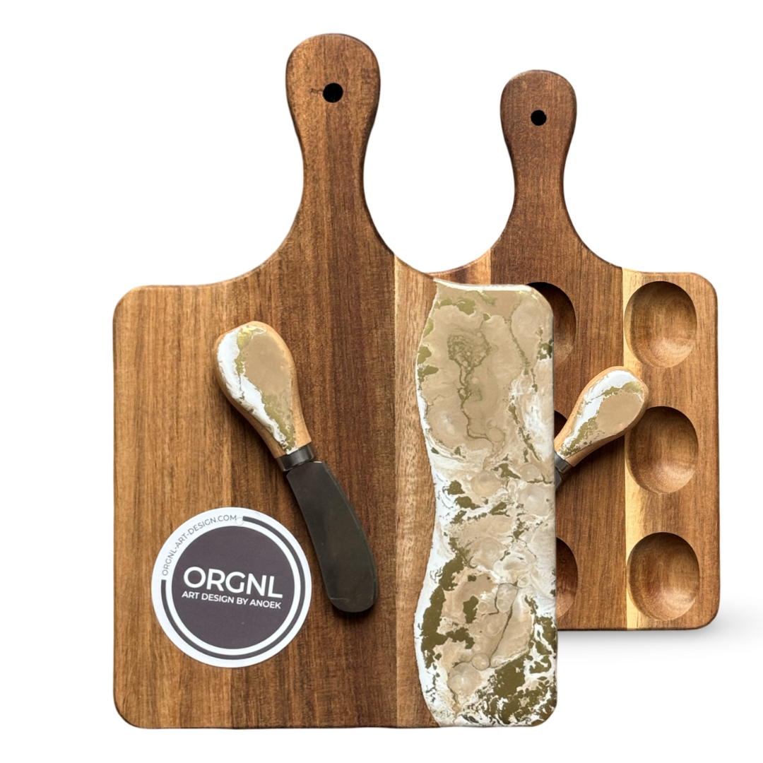 Op zoek naar een unieke borrelplank die zowel praktisch als stijlvol is? Onze handgemaakte serveerplank met epoxy is een echte eyecatcher!