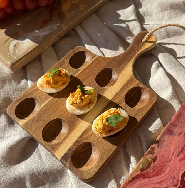 Dankzij het dubbelzijdige design gebruik je de ene kant als kaas-, charcuterie plank en de andere kant voor heerlijke hapjes zoals gevulde eieren, dadels of tapas die op hun plek moeten blijven liggen.