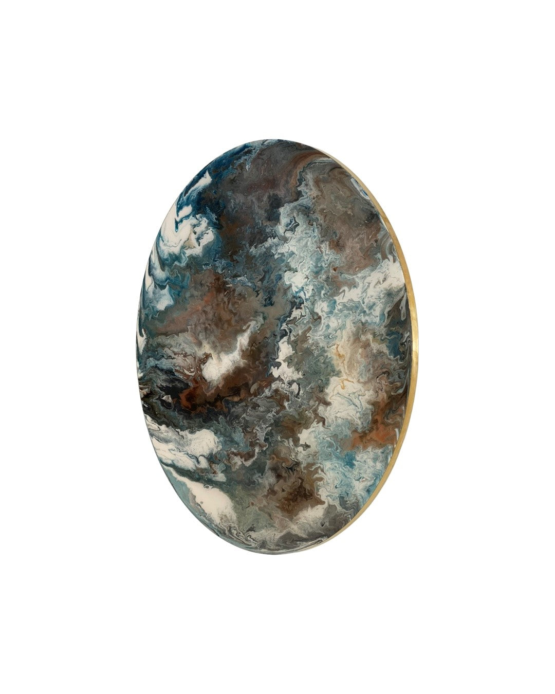 Materialen: MDF houten paneel, hoogwaardige acrylverf, professionele high gloss epoxy en 30 mm messing omlijsting. Inclusief 360 graden roterend ophangsysteem.