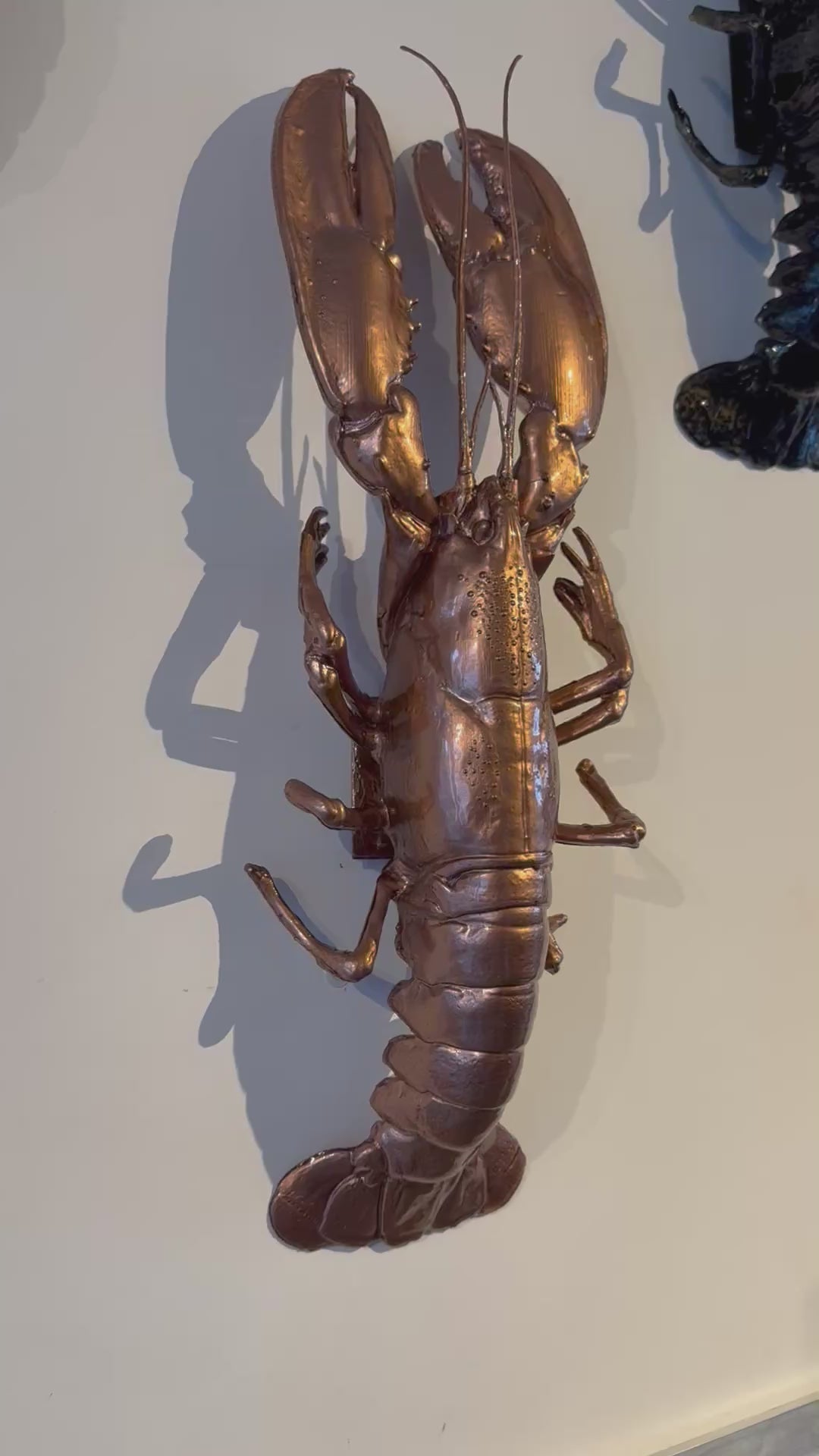 De ORGNL Art Design epoxy kreeft sculpturen zijn met de hand door Anoek beschilderd met hoogwaardige acrylverf en daarna afgegoten met een glanzende laag high gloss transparante epoxy. De kreeft weegt niet veel en is voorzien van een ophangsysteem en zeer gemakkelijk te bevestigen aan de wand.