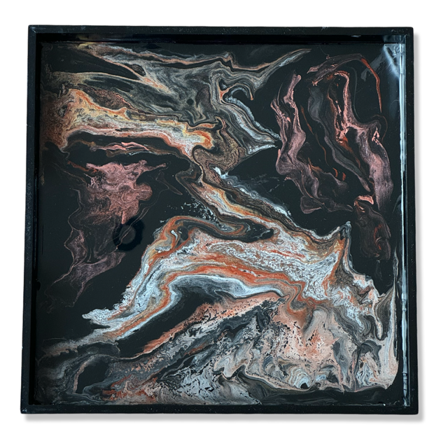 Vierkant zwart houten dienblad met luxe epoxy versiering