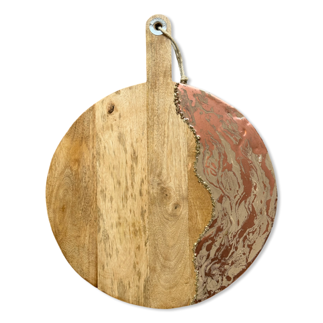 XL ronde epoxy borrelplank Deluxe rosé brons/beige/gouden steentjes