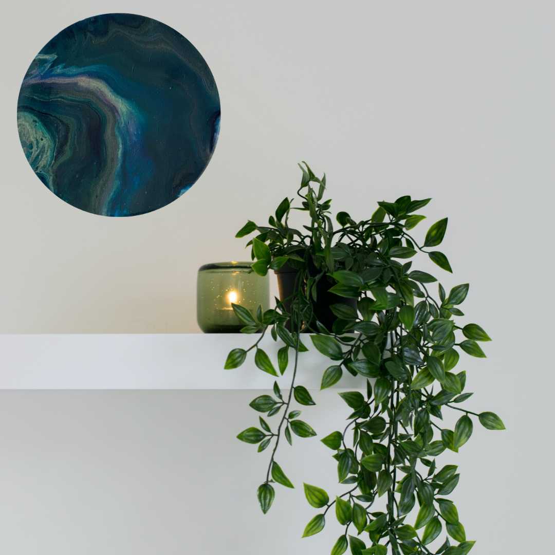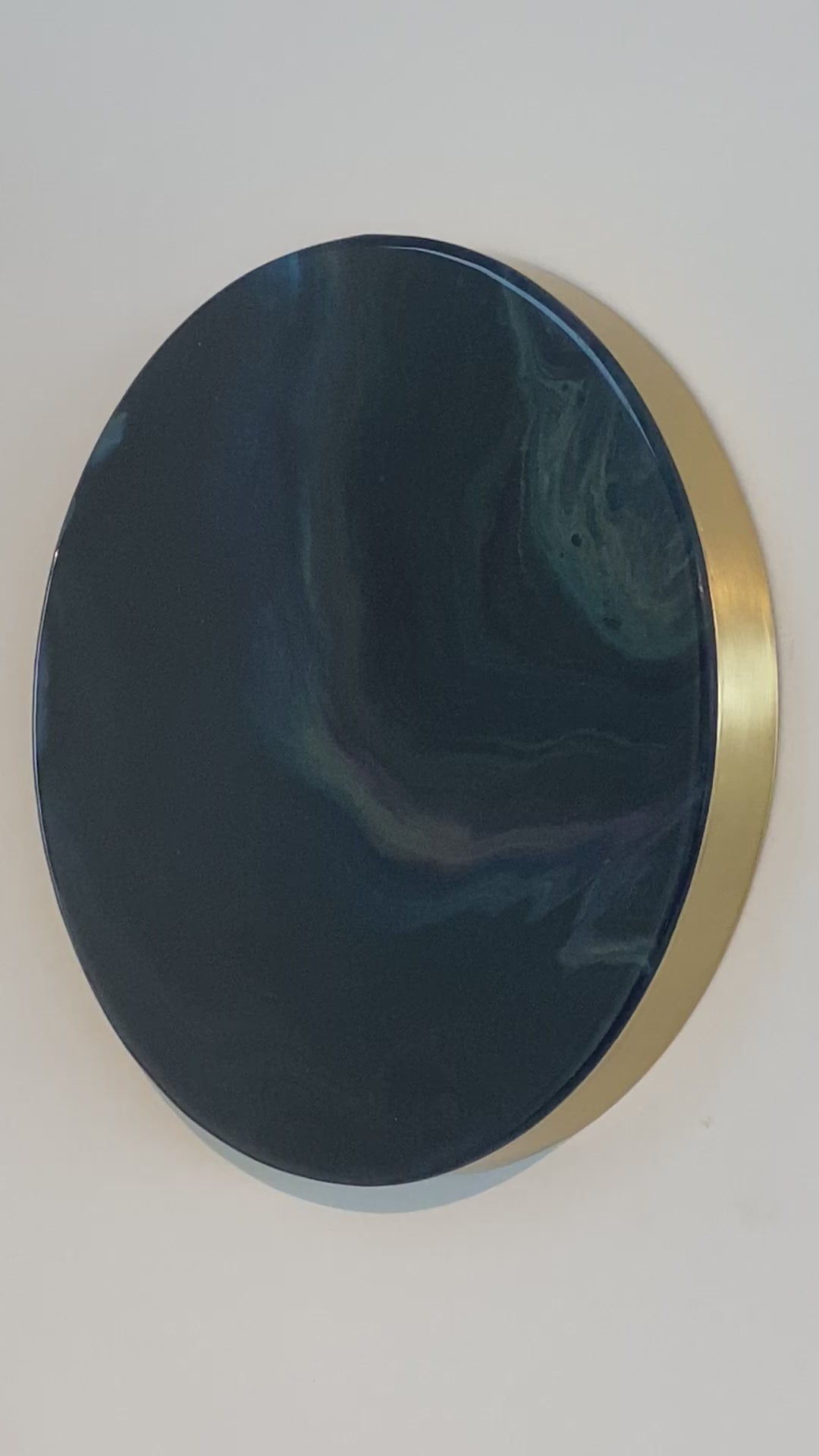Acryl creatie met een topcoat van meerdere lagen high gloss epoxy en afgewerkt met een handgemaakte goudkleurige messing lijst.