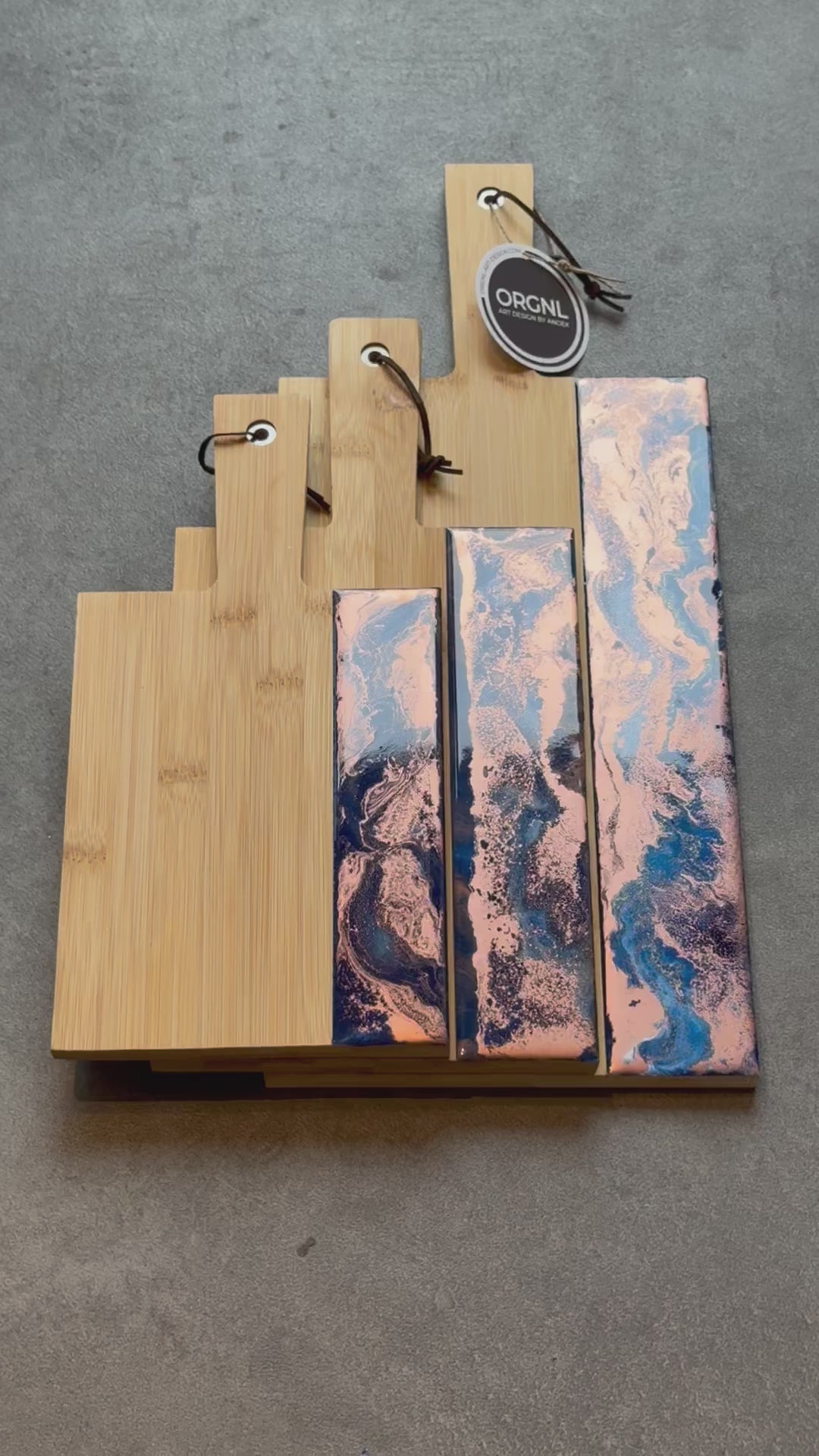 Set 3 epoxy borrelplanken blauw/wit/brons 10% korting