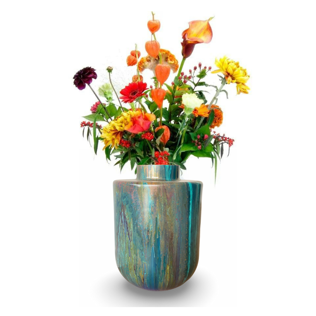 Deze unieke handbeschilderde XL vaas van ORGNL Art Design is een echte luxe eyecatcher voor op tafel. Geschikt om een boeket of losse bloemen in te plaatsen, maar ook leuk met seizoensgebonden decoraties. Een waar kunstwerk op zich!