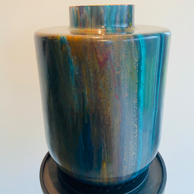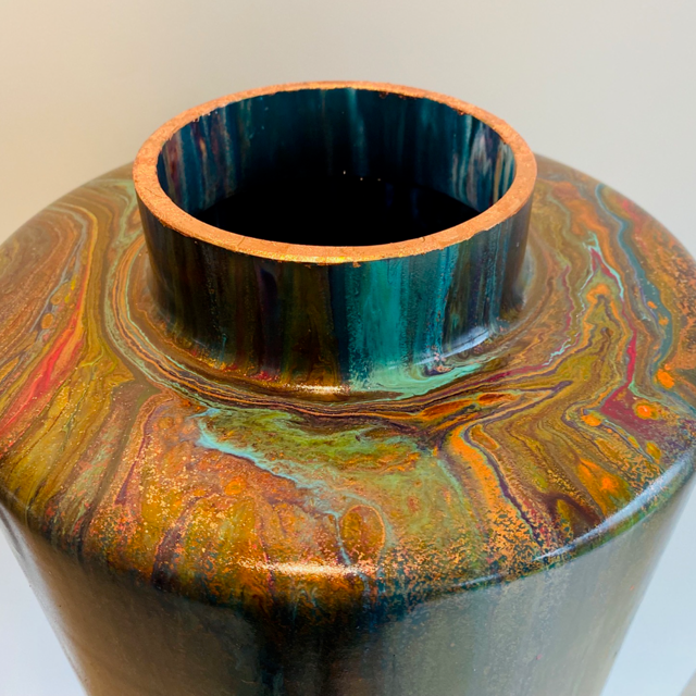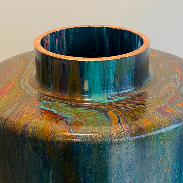 De luxe XL vaas is met de hand met hoogwaardige acrylverf beschilderd en daarna afgelakt met een weerbestendige vernislak. En om de vaas wat extra glamour te geven is het randje van de vaas voorzien van een laagje bladbrons.