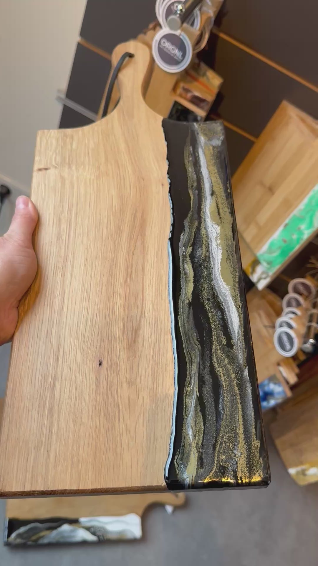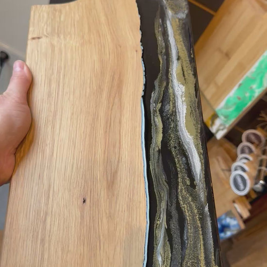 Luxe borrelplank met epoxy - 50 cm - zwart/wit/goud