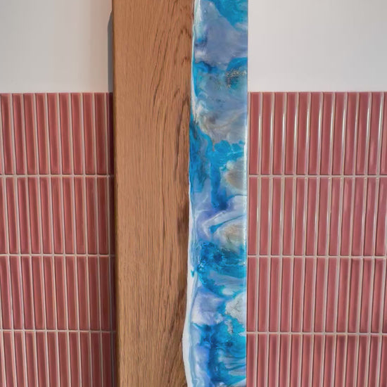Luxe XXL epoxy borrelplank Bloom - 95 cm - wit/blauw/paars/goud