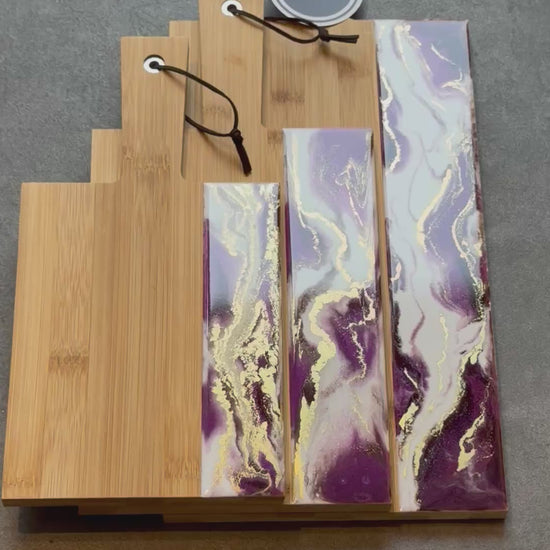 Set 3 luxe borrelplankenmet epoxy wit/paars/goud 10% korting