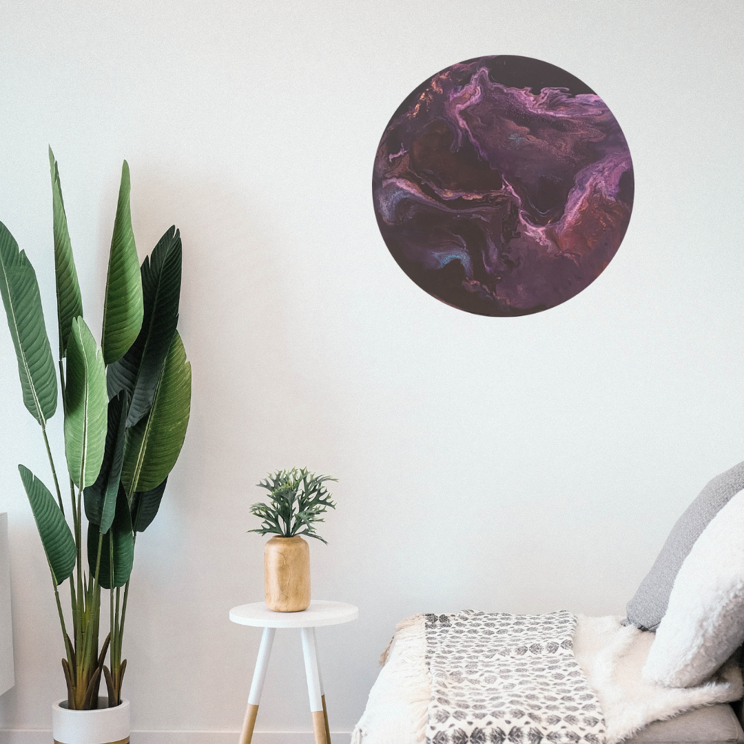 Dit abstracte ronde epoxy schilderij is een uniek handgeschilderd kunstwerk. Het design is opgezet met hoogwaardige acryl verf dat door de kunstenares zelf gemengd wordt met diverse kleurpigmenten. En het is afgewerkt met meerdere lagen professionele high gloss epoxy om extra diepte en een luxe look te creëren.