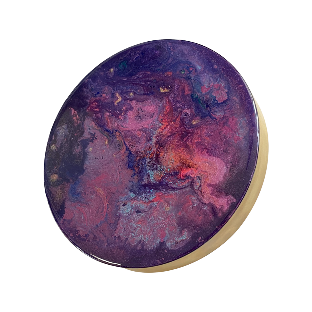 Acryl creatie met epoxy topcoat gemaakt op hout. Goudkleurige messing omlijsting.