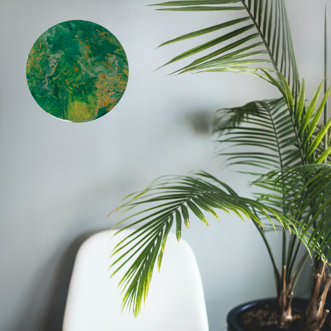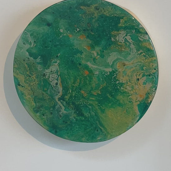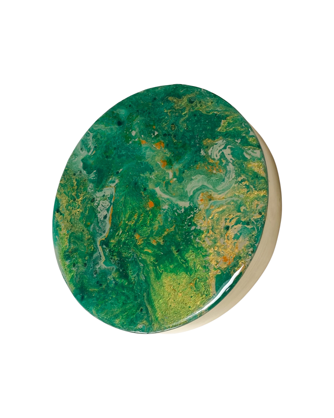 Acryl creatie met een topcoat van meerdere lagen high gloss epoxy en afgewerkt met een handgemaakte goudkleurige messing lijst. Bij afname van meerdere creaties vraag naar de staffelkorting.