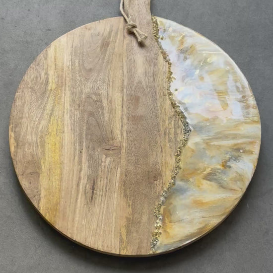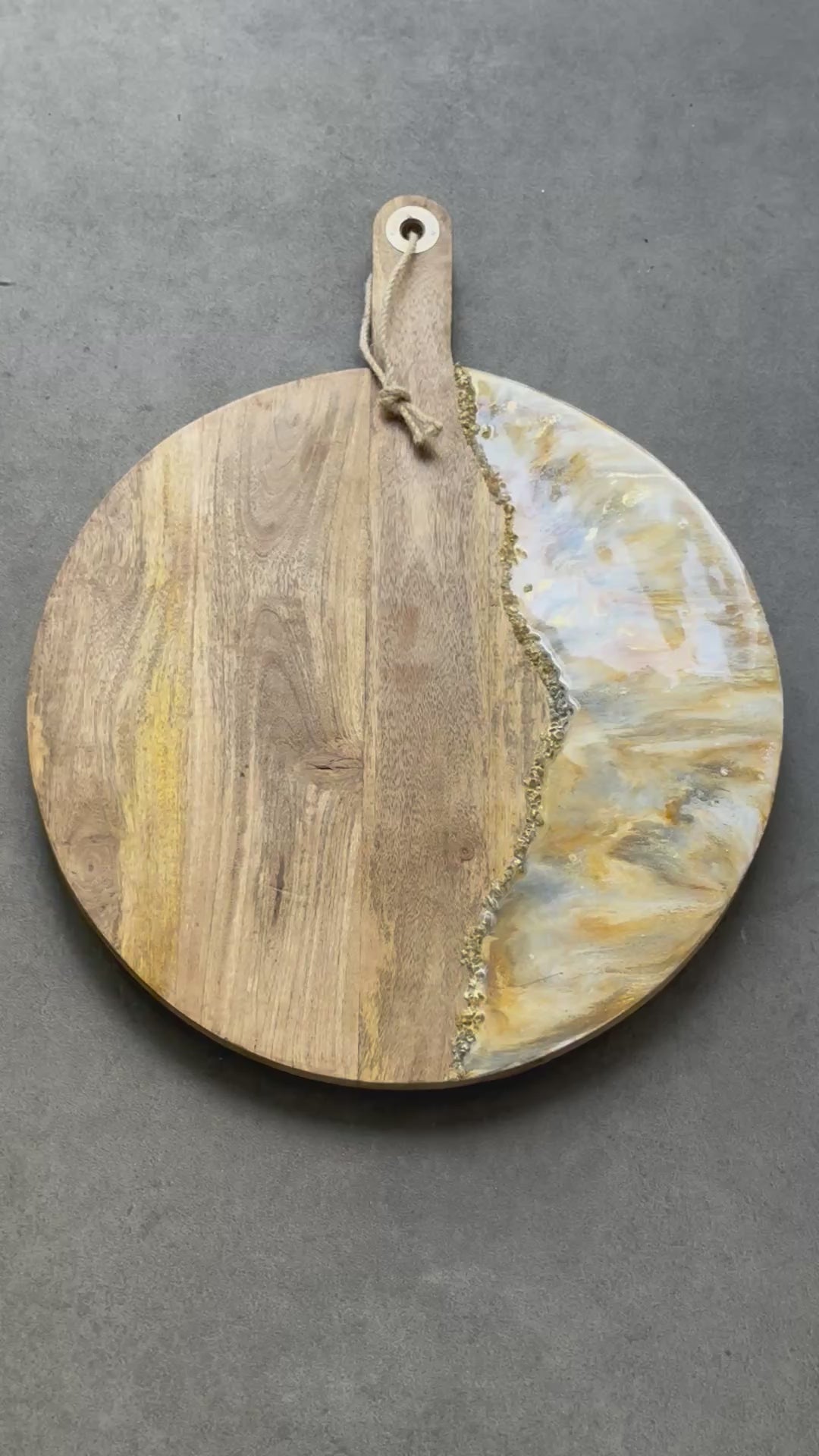 XL ronde epoxy borrelplank Deluxe oker/zilvergrijs/goud